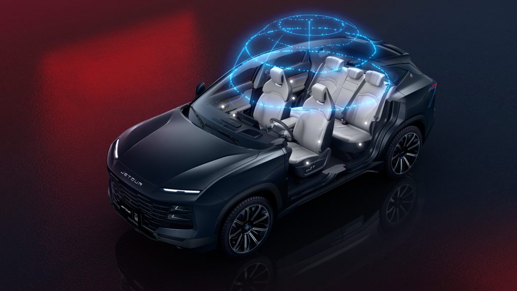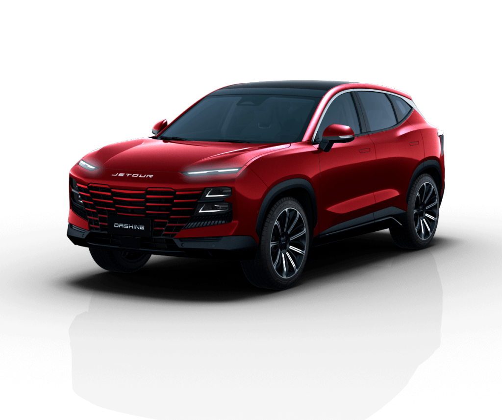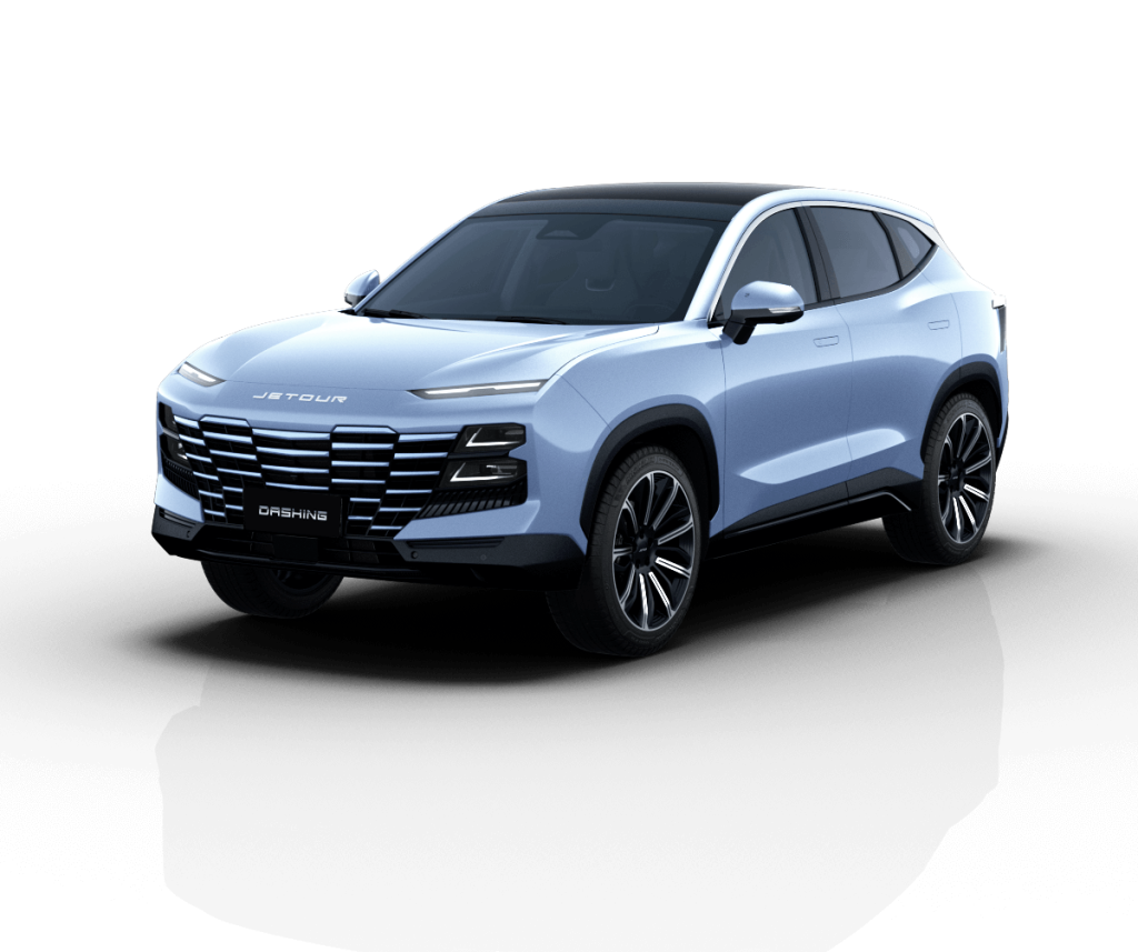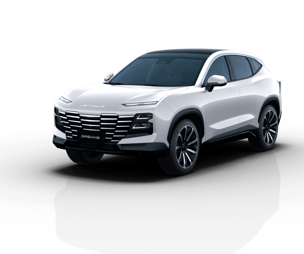 El JETOUR DASHING es un SUV diseñado para aquellos que buscan un estilo pionero y tecnología innovadora. Con un diseño intergeneracional que abandona la apariencia tradicional orientada a la familia, el DASHING presenta un cuerpo delgado con una parte trasera fastback de moda, que exuda una atmósfera deportiva y fresca. Los bordes afilados del frontal, la parrilla de entrada de aire en capas y los faros LED delgados en ambos lados crean una estética avanzada tecnológicamente. Las luces láser en los espejos retrovisores, los tiradores de sensores ocultos y las llantas de 20 pulgadas de múltiples radios completan una apariencia general elegante y robusta.